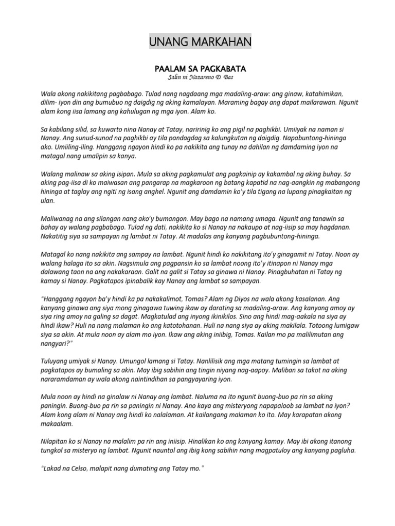 Kaya nilagyan ko ng pangalan. Hanggang sa nangangatog kong mga bisig ay yumapos sa mga binti ni Tatay. Naramdaman ko ang panlalamig ng katawan at ako ay napahandusay sa kanyang paanan.